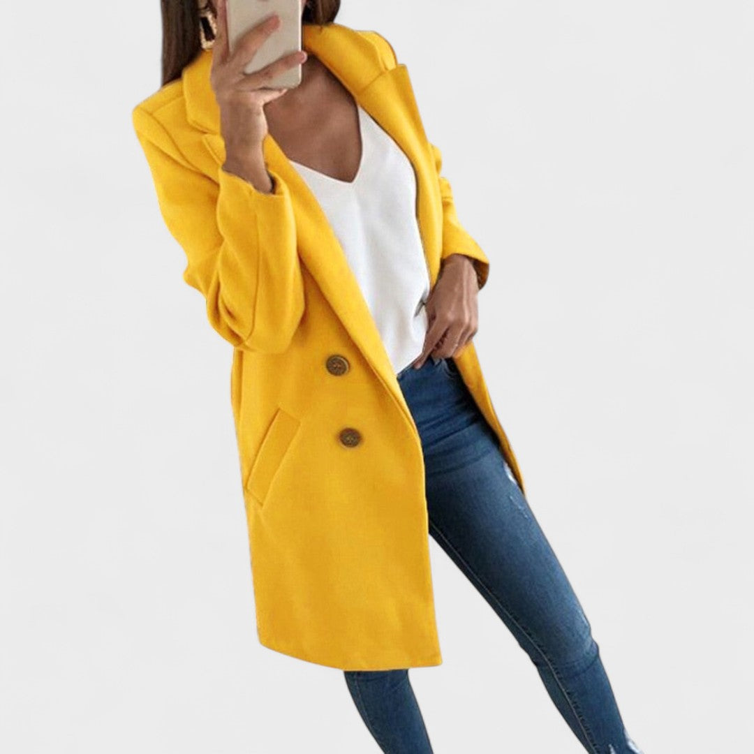 Симона - Дамско карирано туидно палто с реверен яка и прилепваща кройка