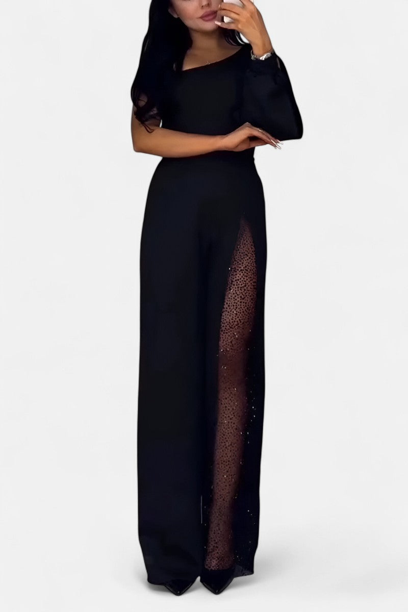 Артемида - Елегантен комбинезон с едно рамо и блестящи детайли