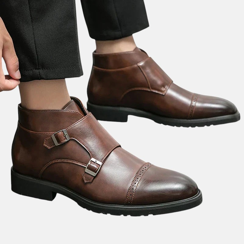 Подобрете стила си с кожените обувки Христо с двойно закопчаване - олицетворение на изтънчена елегантност. Изработени от висококачествена кожа, те предлагат несравнимо ниво на изтънченост, съчетавайки традиционно занаятчийство с модерен лукс, идеални за изискан мъж.