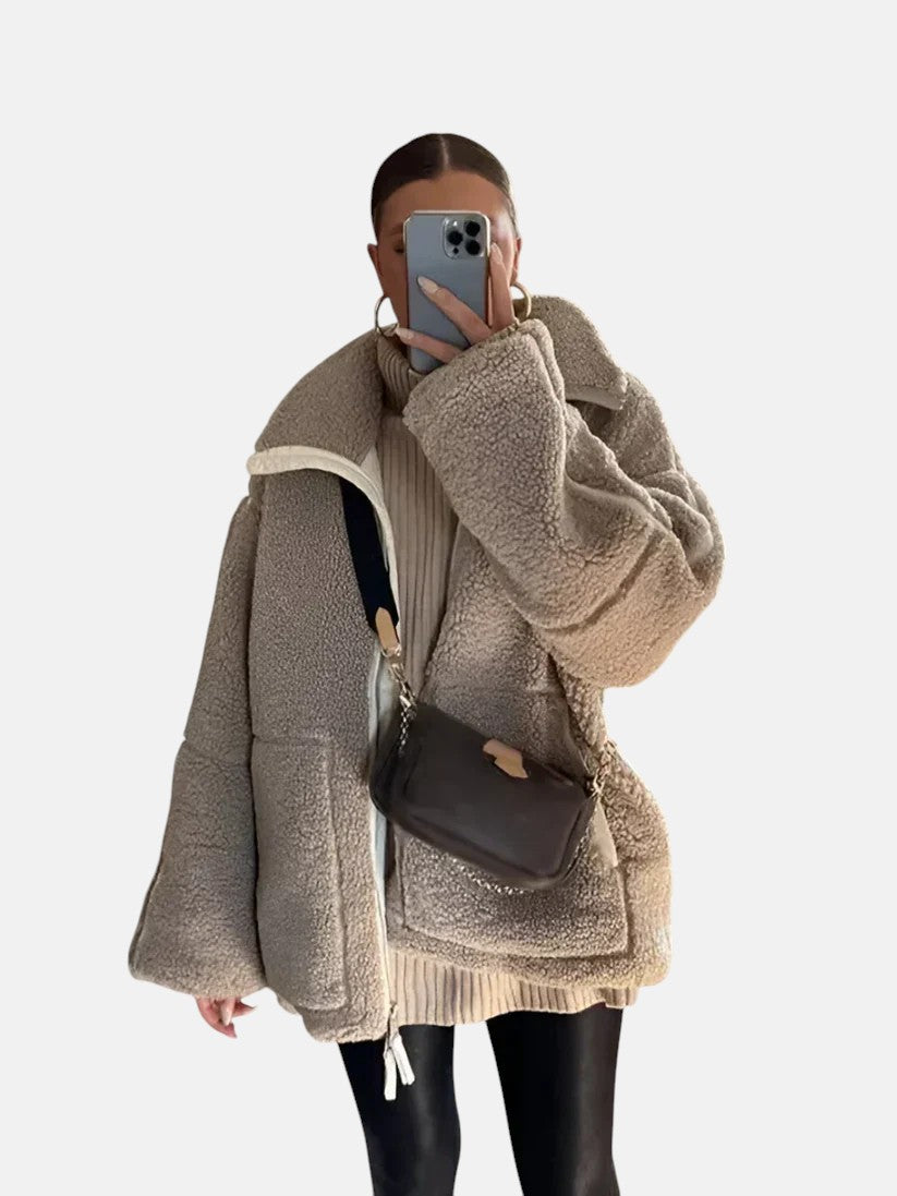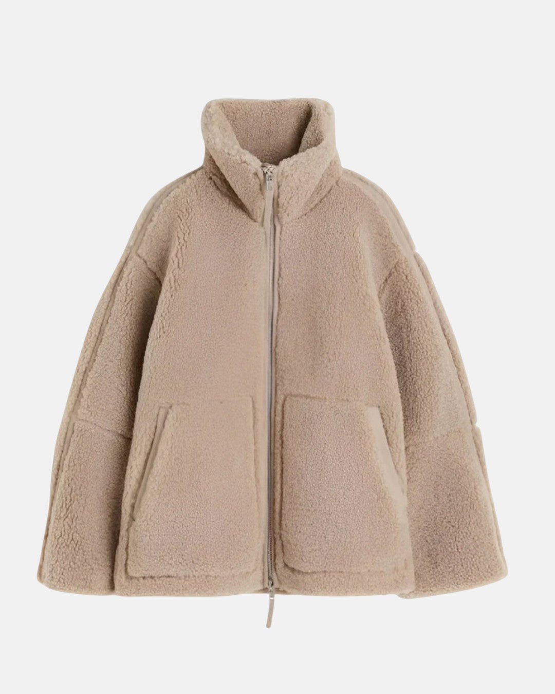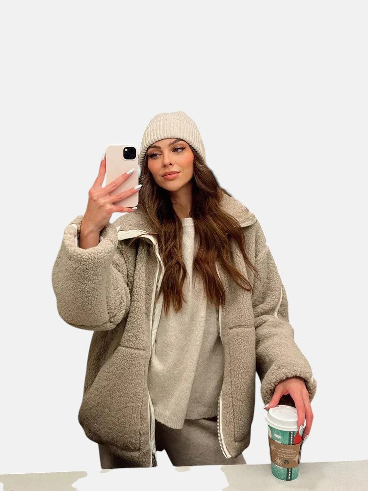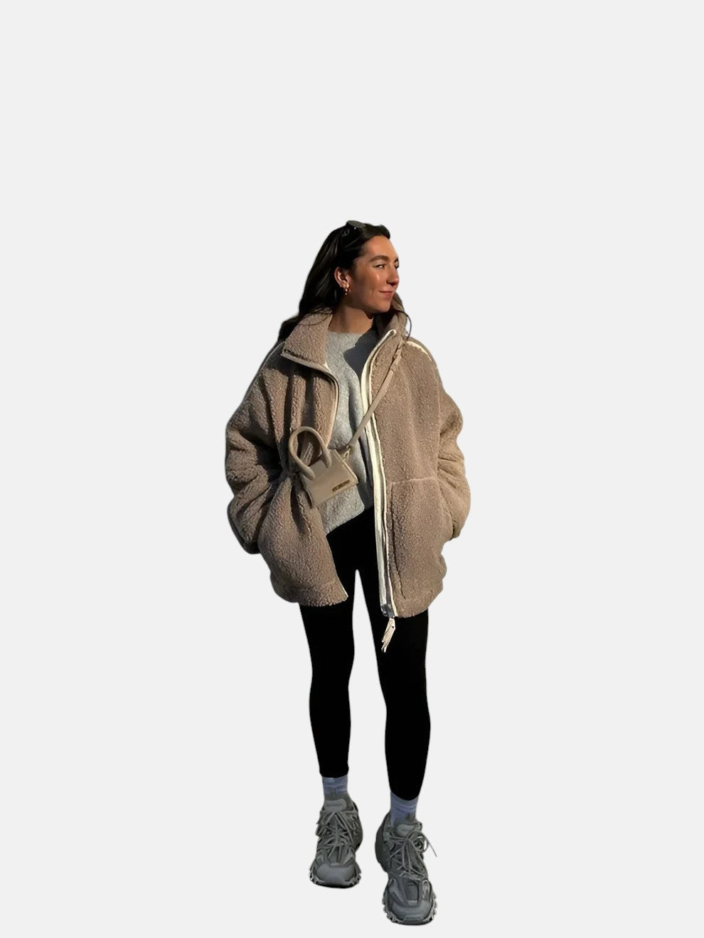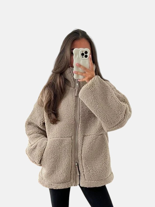 Преоткрий топлината с нашето супер меко и модерно палто от изкуствена овча вълна. С свободна кройк силует и висока яка, това палто е създадено да те обгръща с уют, без да прави компромис със стила. Практичните джобове и висококачественият цип го правят перфектния избор за студените дни — както за града, така и за разходка сред природата.