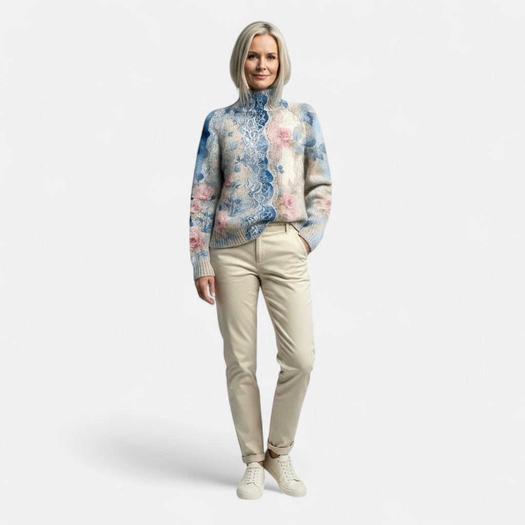 Албена - Плетен Пуловер с Елегантен Цветен Узор