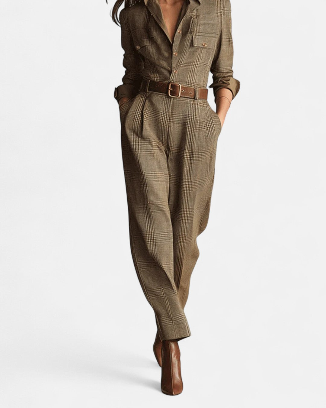 Барбара - Изискан комбинезон с текстура от твид и каре
