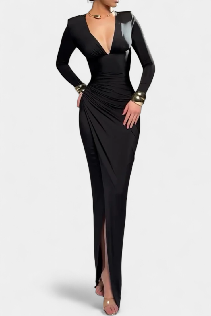 Елена Рокля с Дълги Ръкави и Дълбоко V Деколте