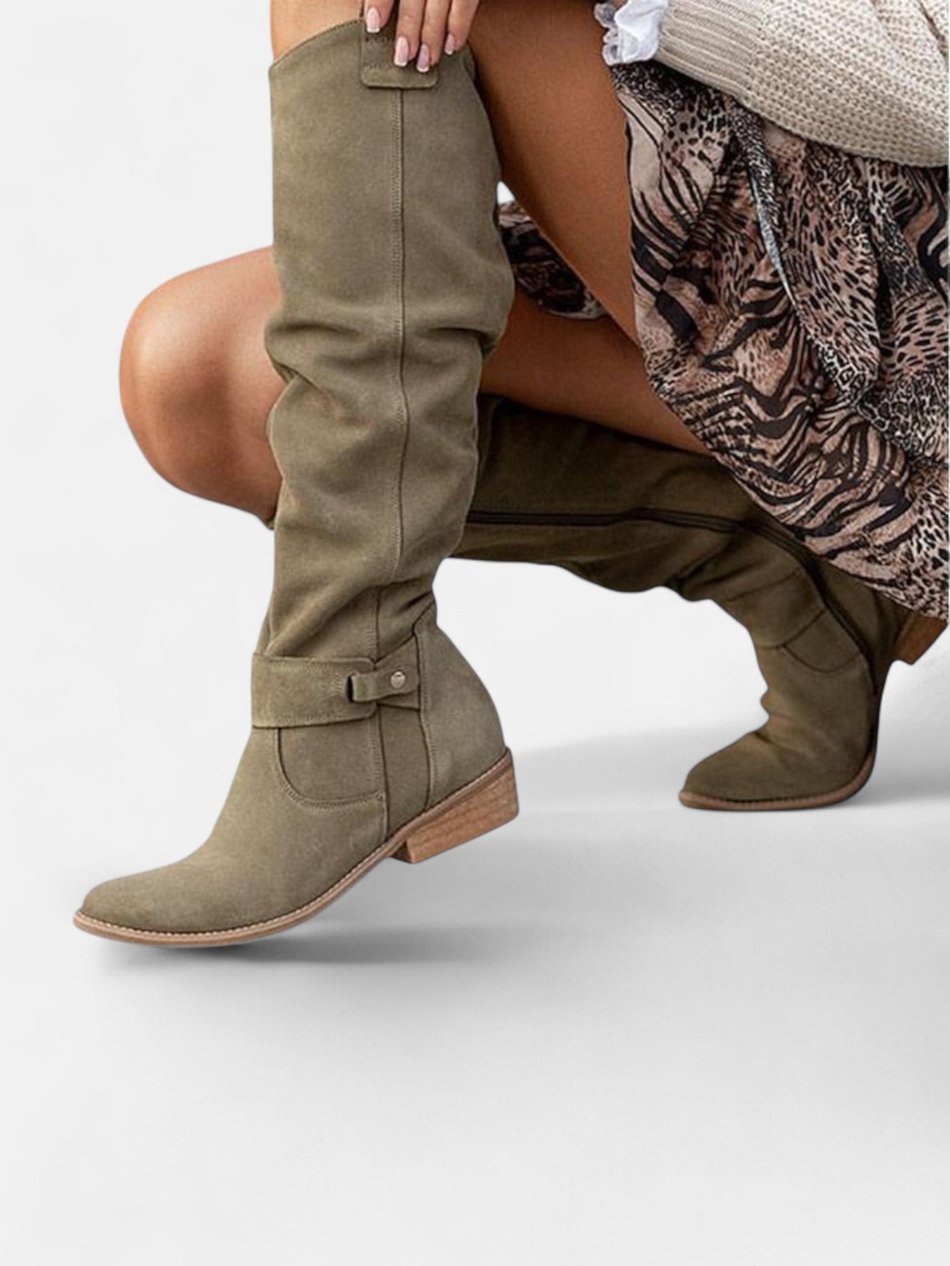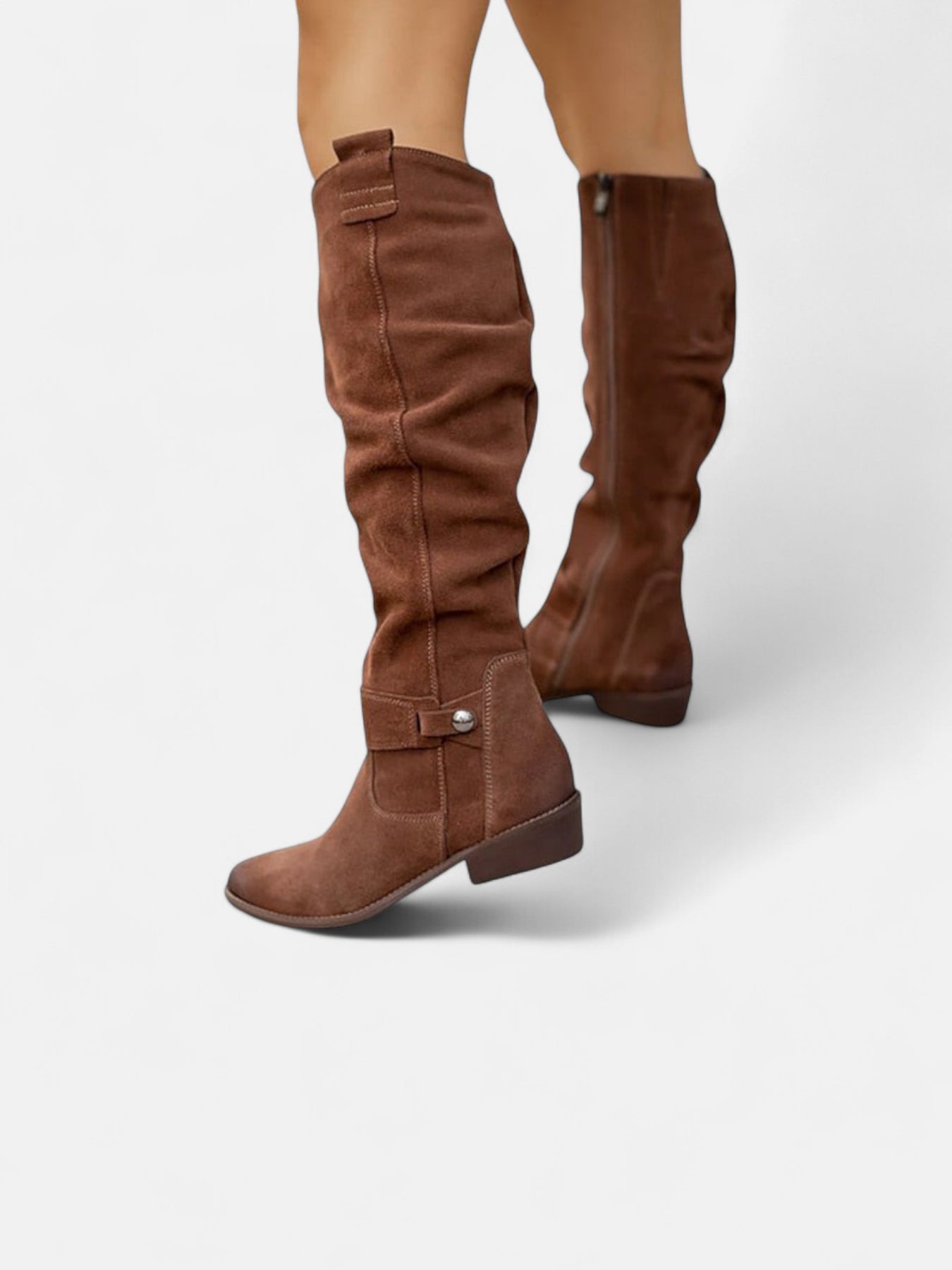 Тези високи ботуши съчетават стил и удобство в перфектна хармония. Изработени от висококачествени материали, те се адаптират към формата на крака и осигуряват комфорт през целия ден. Подходящи са както за ежедневието, така и за по-елегантни поводи, придавайки изискан завършек на всяка визия.